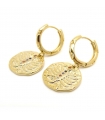 Boucles d'oreilles Médailles en laiton doré à l'or fin 16 carats et zircons de différentes couleurs. Signe zodiaque de la Balance : 23 Octobre au 22 Novembre.