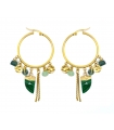 Boucles d'oreilles Créoles Imany en acier inoxydable doré, malachite, aventurine et turquoise africaine.