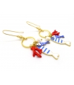 Dive into the sunny Mediterranean spirit with these gold-tone earrings, adorned with small blue and white striped fish, freshwater pearls, and red coral branches. A playful and radiant piece that brings to mind seaside holidays.