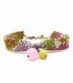 Petit bracelet liberty Botanica en tissus, perle en quartz et pierre gemme. Bracelet fantaisie femme tendance.