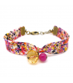 Petit bracelet liberty Graffiti en tissus, pierre gemme, verre facetté et laiton. Bracelet fantaisie femme tendance.