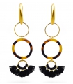 Jolies boucles Kenya en laiton finition or, résine écaille de tortue et pompon en coton.