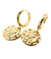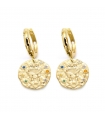 Boucles d'oreilles Médailles en laiton doré à l'or fin 16 carats et zircons de différentes couleurs. Signe zodiaque des Gémeaux : 21 Mai au 21 Juin.