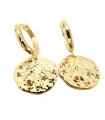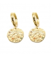 Boucles d'oreilles Médailles en laiton doré à l'or fin 16 carats et zircons de différentes couleurs. Signe zodiaque de la vierge : 23 Août au 22 Septembre.