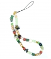Bracelet de portable en pierre gemme (aventurine, agate indienne, quartz rutile), nacre, perles d'eau douce, verre facetté, bois et laiton doré.