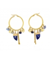 Boucles d'oreilles Créoles Imany en acier inoxydable doré, lapis lazuli, labradorite et sodalite.