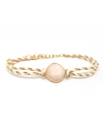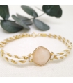Bracelet Stone en coton beige, blanc et or et pierre naturelle en Aventurine rose.