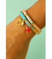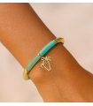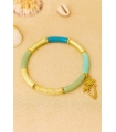 Ajoutez une touche colorée à vos tenues avec ce bracelet élastiqué aux tons lumineux. Composé de perles tube en résine vert sauge, turquoise, bleu profond or pailleté et doré, il est accessoirisé d'un pendentif en forme de palmiers pour une note fantaisie.